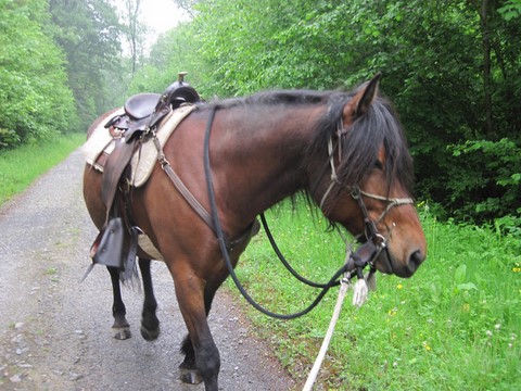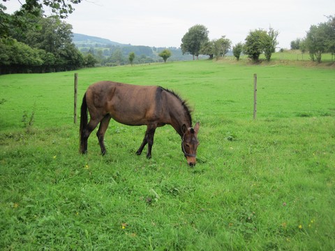 Mais si je suis devant tout le monde, je me sens très fier et allonge l'allure. Si le meneur qui me tient est inattentif, je m'amuse à le tirer au bord du chemin pour brouter. Jamais méchant, je suis parfait pour vos enfants en-dessous de 5-7 ans.