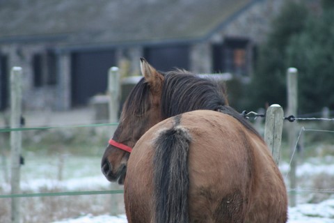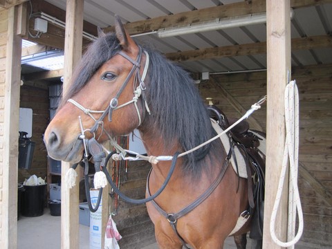 Je travaille au bât, donc je porte les bagages lors des randonnées. Je suis également travaillée sellée et porte les enfants.