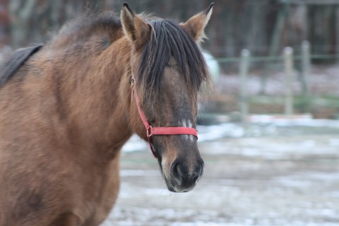 Ma robe est "dun". J'ai, comme Milou et Maldone, une croix de Saint André. La raie dorsale est bien nette mais la raie cruciale est plus diffuse. J'ai également des zébrures aux jambes.
