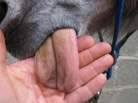 Ma petite particularité : je fais le clown. Joe me prend la langue, me la caresse et ... je la laisse pendre des secondes entières, au grand rire des enfants et parents qui me prennent alors en photo.