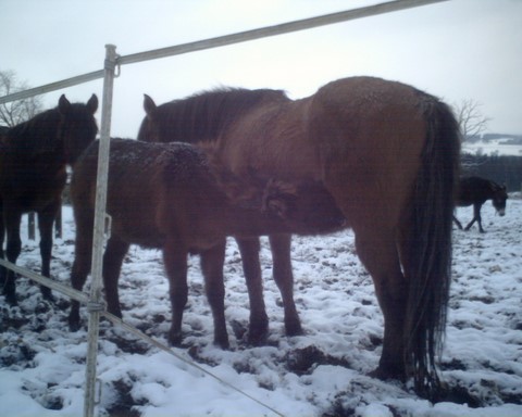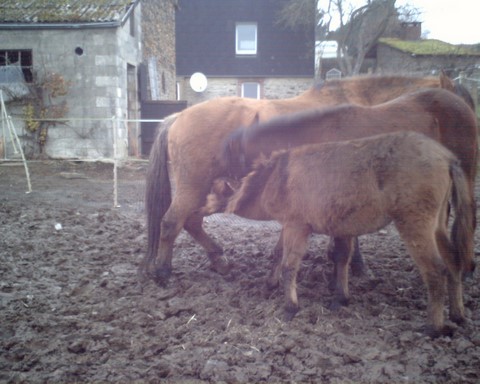 Par contre.... hum... elle m'a aussi fait comprendre que j'avais un peu trop profité de la fatigue de ma maman et elle m'a remis les pendules à l'heure sur la hiérachie d'un équidé : je pouvais boire son lait, mais je devais lui obéir au doigt et à l'oeil, même à 5 mètres d'elle. Ce que j'ai fait, car j'aimais bien de recevoir du lait.