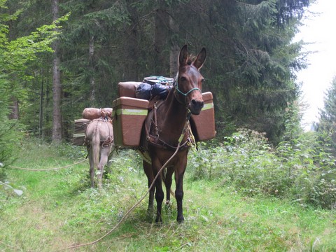 Un âne bâté suffit pour le portage des bagages de quatre personnes pour un week-end ou une semaine.