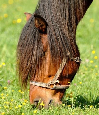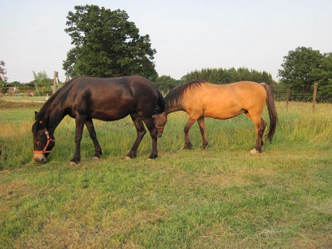 J'ai tout le temps faim ou envie de manger. Parfois, je fais le singe dans la gamelle ou encore je triche et change de pré pour avoir de la meilleure herbe. Mais si Joe me voit, je reviens vite vers elle et me laisse me remettre dans le pré d'origine sans discuter.